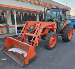 USED 2006 KUBOTA M7040HDC 70HP 4WD TRACTOR – 5040 HOURS – 8 SPEED WITH SHUTTLE – QUICK ATTACH BUCKET AND CAST CENTER WHEELS – $32,000 (ON CONSIGNMENT – CASH ONLY)