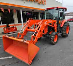 USED 2021 KUBOTA L6060HSTC-LE 60 HP 4WD TRACTOR WITH CAB – HYDROSTAT TRANSMISSION – 3RD FUNCTION, 2 SETS REAR REMOTES, FLUID REAR TIRES – FULLY SERVICED JAN 2026 – 756 HOURS – $43,500 (FINANCING AVAILABLE)